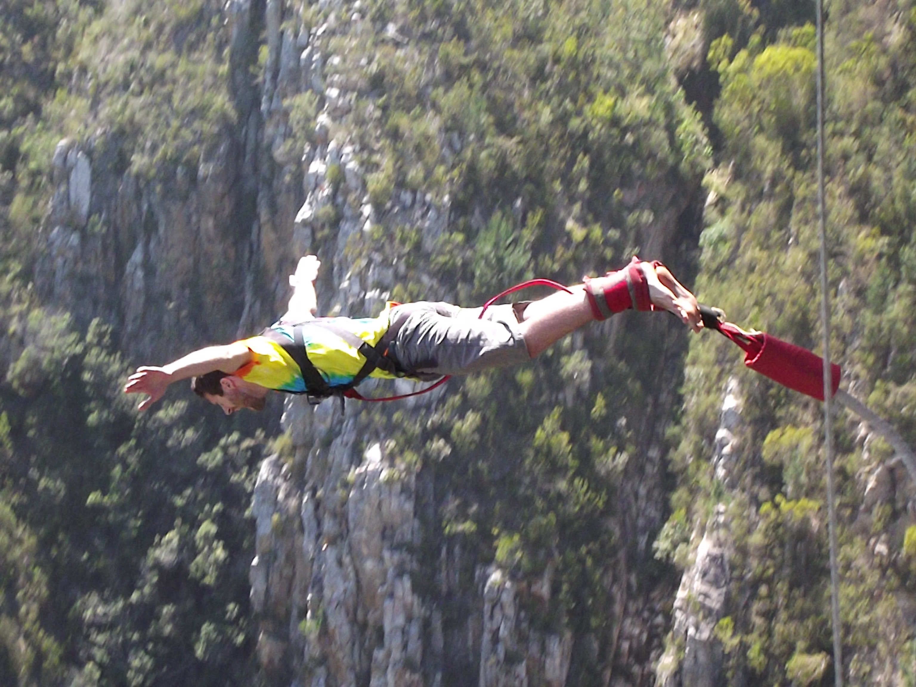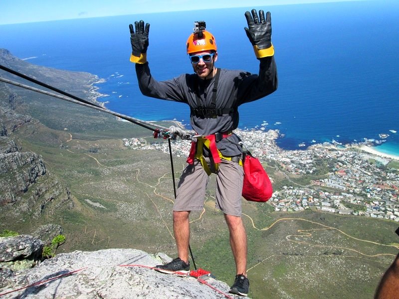 We spent our first two days in Cape Town proper, staying at The Backpack hostel on New Church Street. We mostly just bummed around the city trying to get used to the time difference, pickling our insides with local beers, and enjoying the buying power of the US dollar for once, which is currently exchanging at approximately 1-10 with the SA Rand. During this time we also took a cable car ride up to the top of Table Mountain, which is the dominant land mark at the edge of Cape Town, and, according to their brochures, one of the new natural wonders of the world. Once at the top of Table Mountain, we wandered around for a bit, and then we began the adventurous part of our trip by abseiling (rappelling) off the summit on the longest commercial abseil in the world. Here we also experienced our first (but not last) bit of SA humor. Basically for every dangerous, semi-dangerous, or potentially dangerous activity we did, no matter where we were in the country, all of the workers took great pleasure in telling us, in detail, exactly how unqualified they were, how bad the equipment was, and how likely we were about to die horribly.